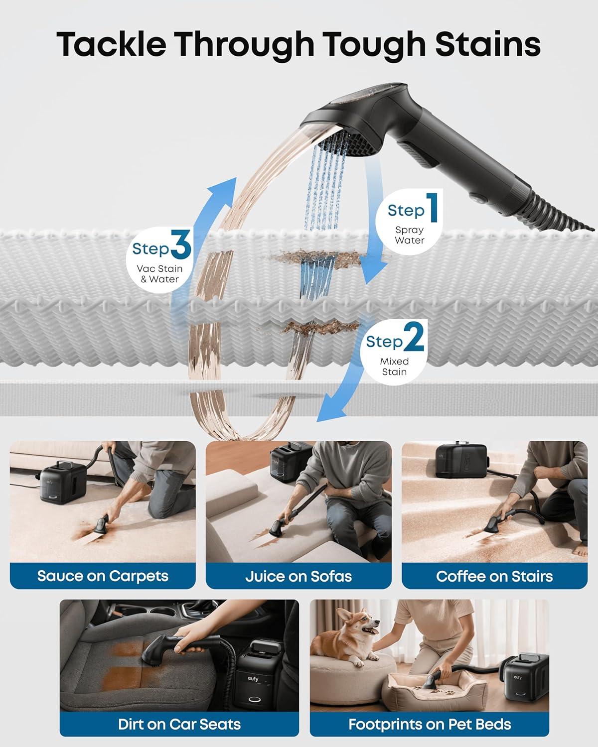 FlexiOne Portable Deep Cleaner: The Industry's First Detachable Portable Deep Cleaner – Integrated into the Omni Station, it effectively handles messes on carpets, stairs, and various fabric surfaces.